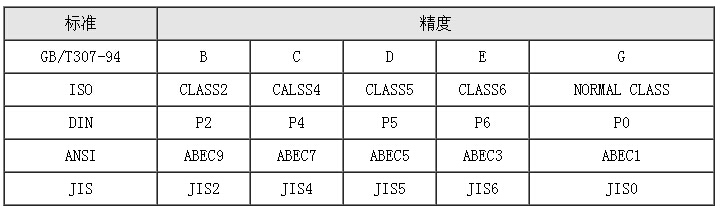 軸承精度按照GB/T307-94>的國家標準可以分為G E D C B.。這些公差和ISO、JIS等標準對照如下: